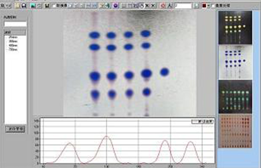 薄層成像系統(tǒng)YOKO-2002-A是本公司為了滿足當(dāng)前薄層色譜分析以及分析需要設(shè)計的新產(chǎn)品,它處理速度快和分辨率高,而且具有噪音小、線性好的特性。儀器由光源、光學(xué)采樣系統(tǒng)、薄層色譜色譜工作站三大部分組成,薄層色譜工作站是目前國內(nèi)開發(fā)的軟件,對儀器可全自動的控制同時還可對薄層色譜斑點進行定量處理,定量精度與進口產(chǎn)品相近、滿足高校日常分析的需要,省時省力是您實驗室的好助手。薄層色譜成像系統(tǒng)的使用成本低。專門為企業(yè)GMP認證打造 .為滿足2020版一部附錄VIB薄層色譜法的規(guī)定,開發(fā)了薄層色譜成像系統(tǒng)YOKO-2002產(chǎn)品。