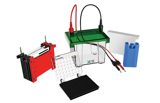 顏色標記的轉印夾和電極,確保凝膠的正確方向