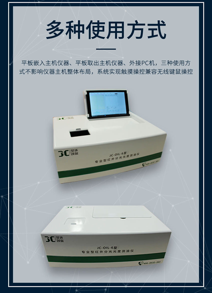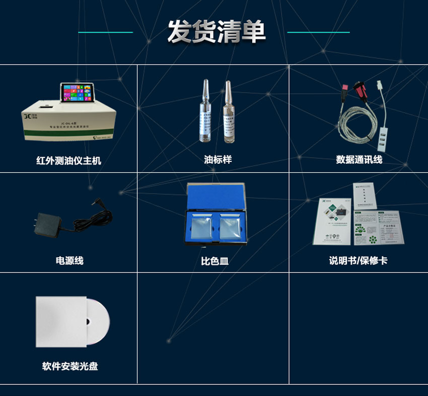 8、軟件系統(tǒng):采用雙系統(tǒng)分析,分別滿足四氯化碳或四氯乙烯做萃取劑的使用方法。