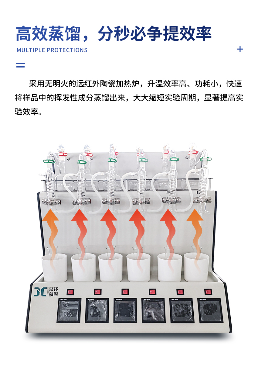 1. 高度集成化設計:冰浴多功能蒸餾儀將冰浴、蒸餾、冷卻三大功能集于一體,既能同時處理6個樣品,又可單獨控制每個獨立樣品。這種設計簡化了實驗流程,減少了設備間的連接與轉換環節,有效提高了實驗效率。
