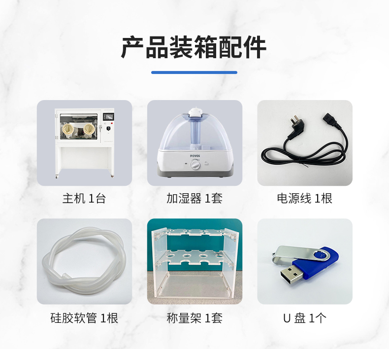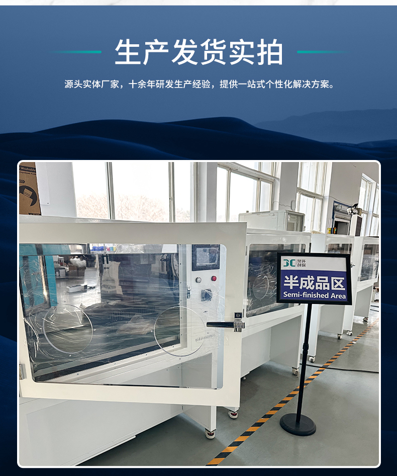 8.稱量室采用一體化結構設計,密封性好,箱體上有兩個操作入口,并用乳膠長手套進行隔離,方便人工操作實驗。
