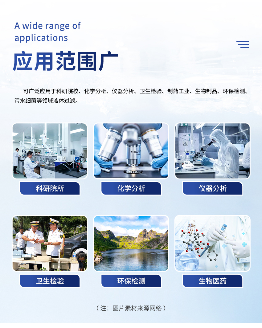 過濾器是化學實驗中用于溶液過濾的裝置,可搭配多聯過濾系統同時開展過濾操作。它具有靈敏度高、操作簡便的特點,適用于水相、有機相以及腐蝕性液體的快速過濾除雜工作,常被用于特定污染物的定量分析等場景。此外,通過選用不同的濾膜,能夠實現對不同樣品的過濾,例如樣品中的懸浮物、葉綠素等。該過濾器十分適合實驗室溶液過濾,在化學分析、環境檢測、水質分析、食品、飲料、科學研究等眾多領域有著廣泛的應用。