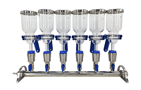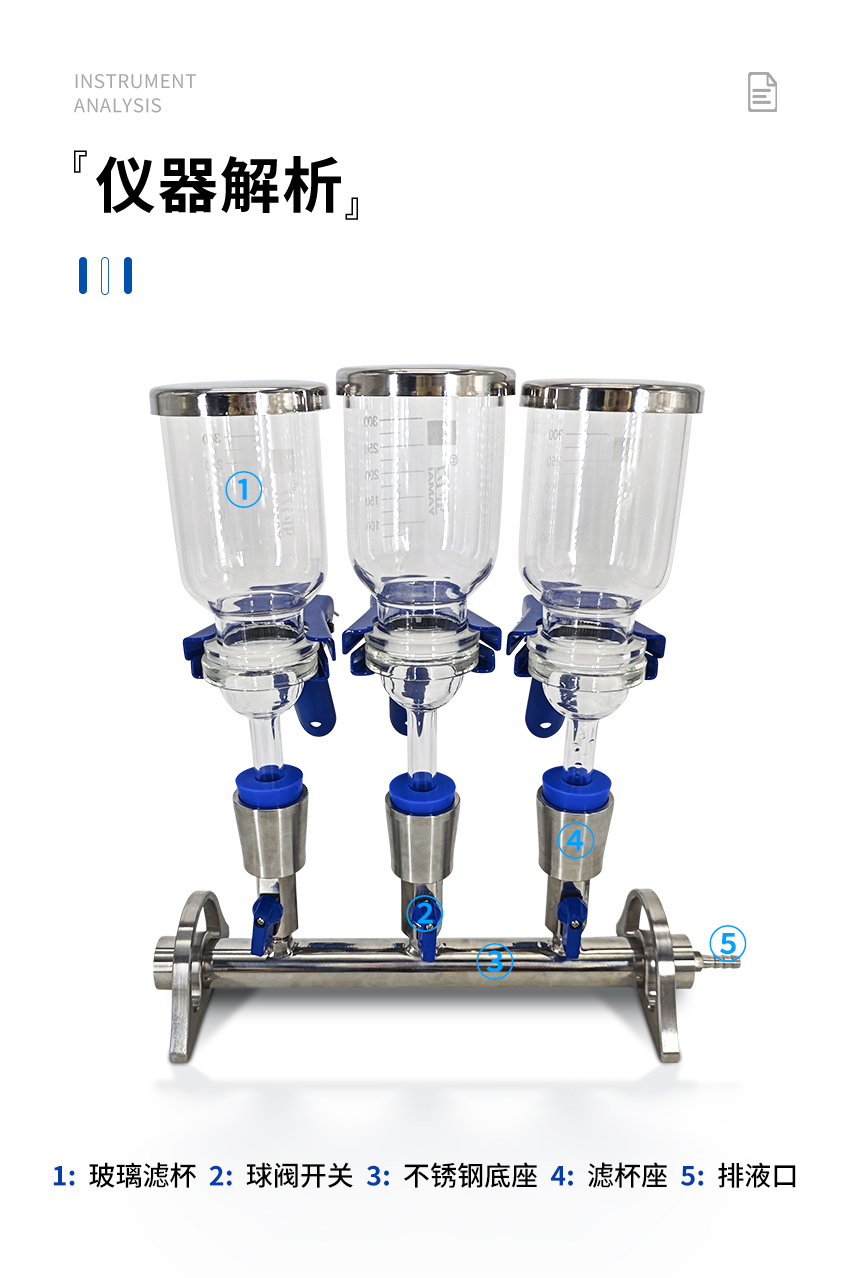 4. 靈活多樣的過濾頭選擇:過濾頭有單聯及多聯(二聯、三聯、四聯、六聯或其他聯數定制)可選。多聯可同時抽濾,提升工作效率;每個濾頭又能獨立控制,方便操作人員靈活運用。