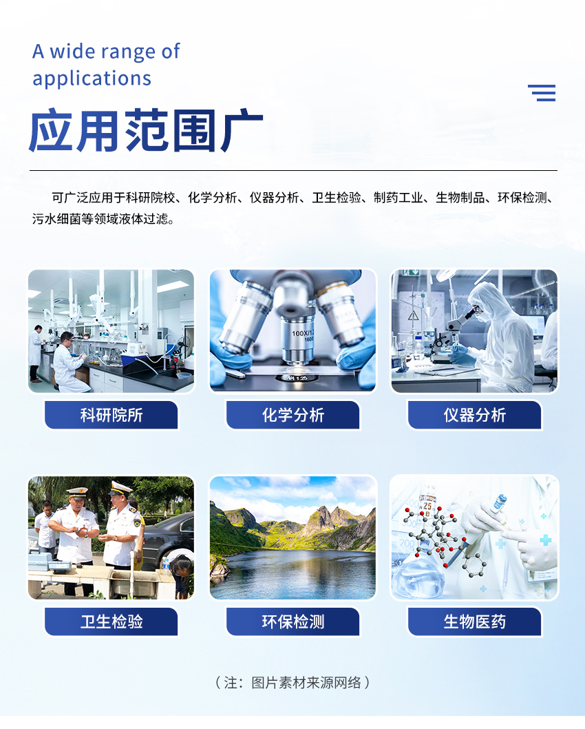 過(guò)濾器是化學(xué)實(shí)驗(yàn)中用于溶液過(guò)濾的裝置,可搭配多聯(lián)過(guò)濾系統(tǒng)同步開(kāi)展過(guò)濾操作。它靈敏度高,操作簡(jiǎn)便,適用于水相、有機(jī)相以及腐蝕性液體的快速過(guò)濾除雜,常用于特定污染物的定量分析等場(chǎng)景。通過(guò)選用不同濾膜,能實(shí)現(xiàn)對(duì)不同樣品的過(guò)濾,比如樣品中的懸浮物、葉綠素等。該過(guò)濾器適用于實(shí)驗(yàn)室溶液過(guò)濾,在化學(xué)分析、環(huán)境檢測(cè)、水質(zhì)分析、食品、飲料、科學(xué)研究等眾多領(lǐng)域有著廣泛應(yīng)用。