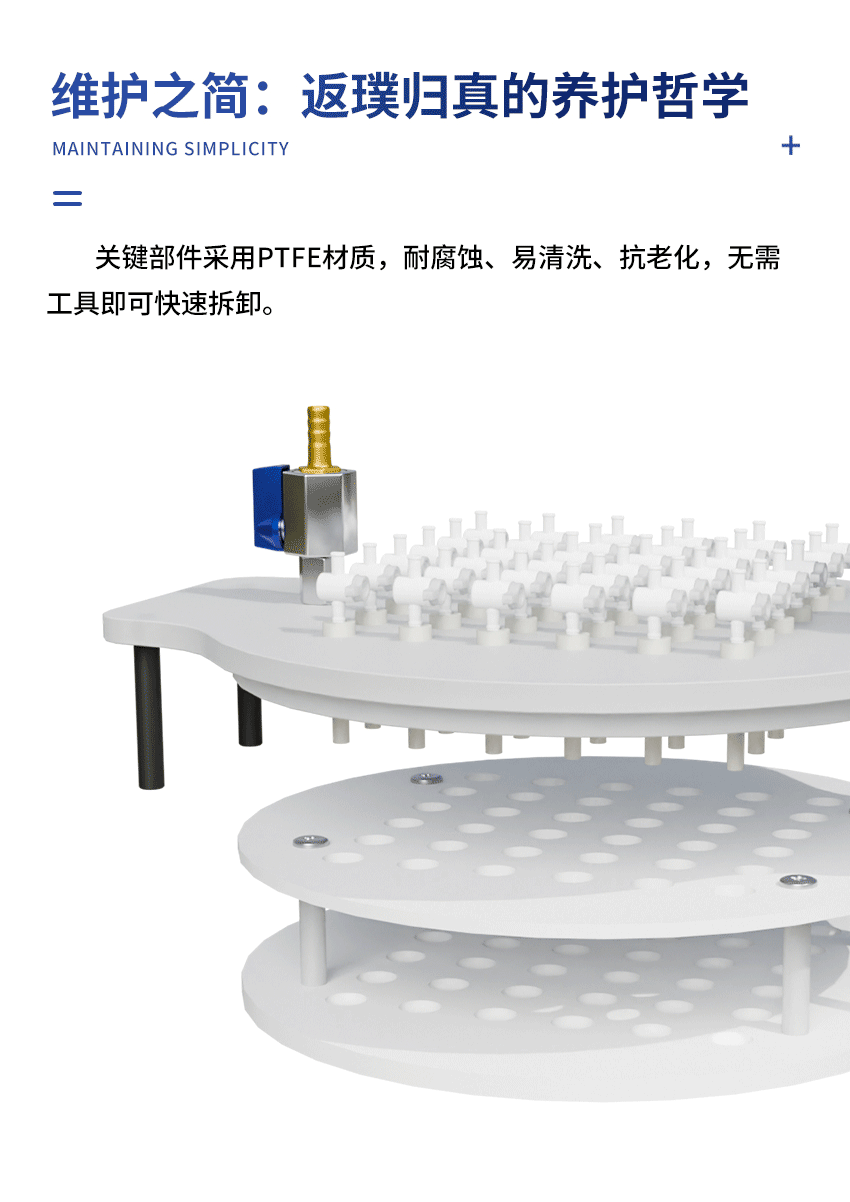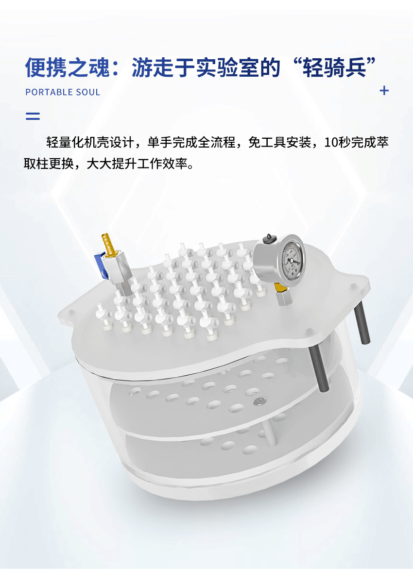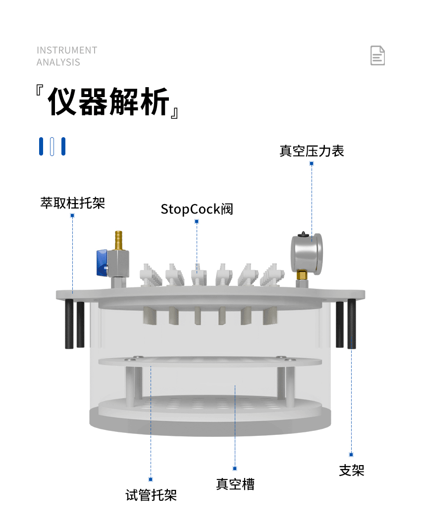 7. 固相萃取裝置的內部試管架由聚四氟乙烯制成,因此具有極高的耐腐蝕性。