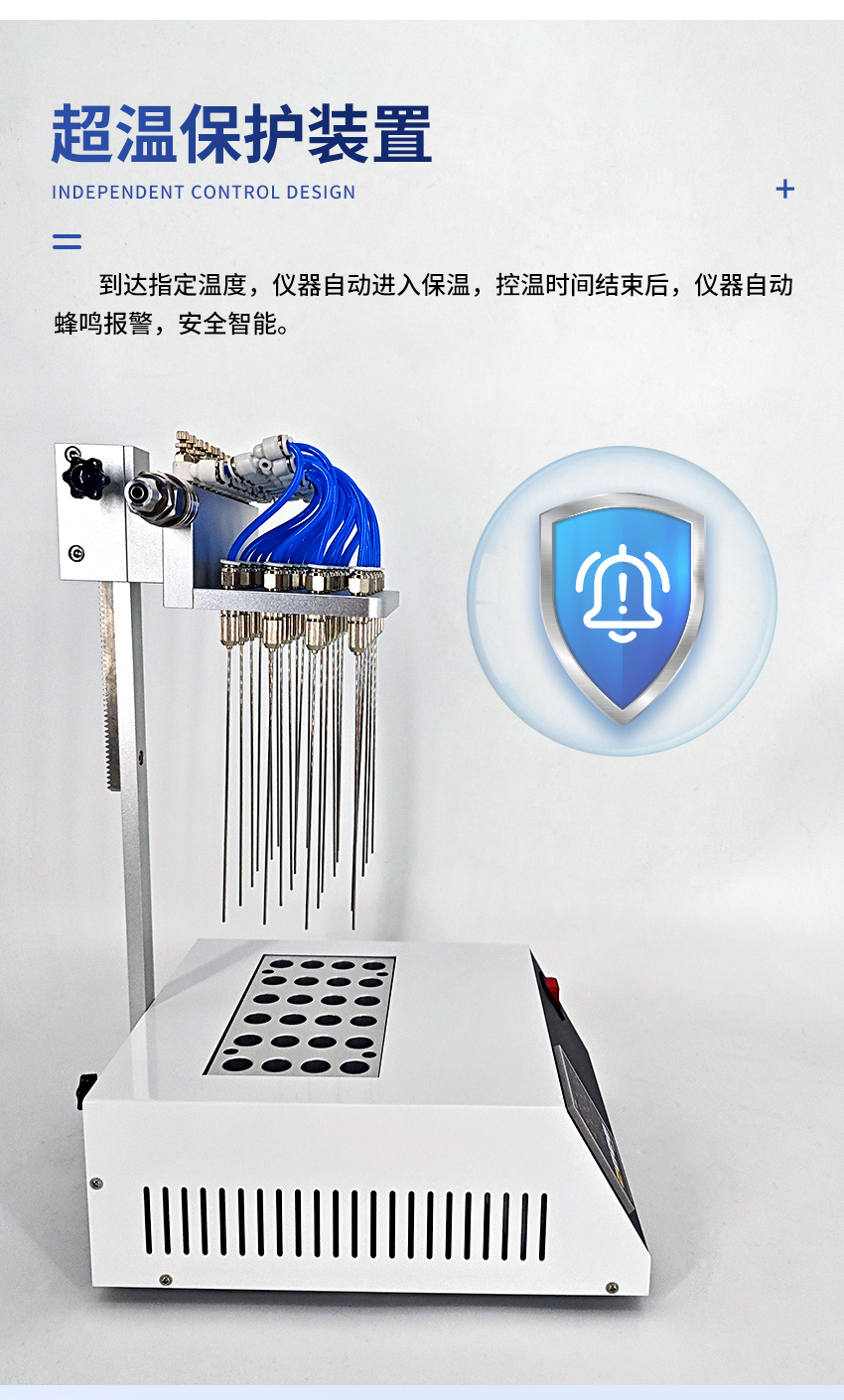 該設備通過金屬浴加熱方式,能迅速去除樣品中的溶劑,從而大幅縮短實驗時間。同時,操作簡便,整個系統可在通風柜中進行操作,不僅降低了操作風險,還減少了水資源的消耗以及廢水的排放,符合環保要求。