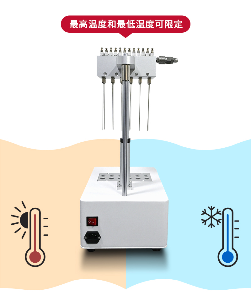 H - L212C/L224C型干式氮吹儀是一款高效且安全的實驗室樣品濃縮設備。該設備擁有獨立氣針控制、氣腔高度電動調節、節約氣體、超溫保護以及液晶顯示屏等一系列先進功能,可快速去除樣品中的溶劑,有效縮短實驗時間。