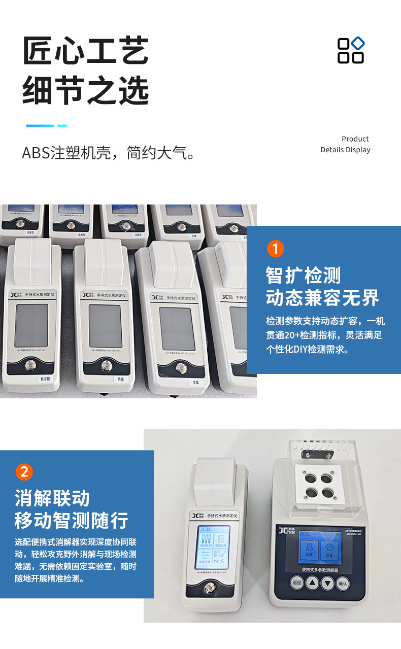 聚創(chuàng)JC-ZLD-01型手持式總氯測定儀依據N,N-二乙基對苯二胺(DPD)分光光度法研發(fā),采用輕量化外殼及人性化程序設計,能快速準確地測量大、中、小型水廠及工礦企業(yè)、生活或工業(yè)用水的總氯濃度,以便控制水中總氯達到規(guī)定的水質標準。