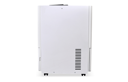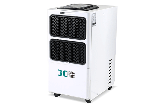除濕機主要由壓縮機、兩器(熱交換器與冷凝器)、風扇、水箱(或排水管)、機殼以及控制器構成。其工作原理為:風扇將潮濕空氣吸入除濕機內,壓縮機制冷系統會使冷凝器表面溫度降至空氣的露點溫度以下。當潮濕空氣流經冷凝器時,空氣中的水汽會析出并附著在冷凝器表面(就如同夏天從冰箱拿出一瓶水,不一會兒瓶子外壁會出現一層冷凝水)。這些水順著冷凝器上的親水箔流到積水托盤,進而流入水箱或通過排水管排出。而經過除濕的干燥冷空氣,會經過熱交換器加熱后排出機外。如此循環往復,從而降低室內濕度。